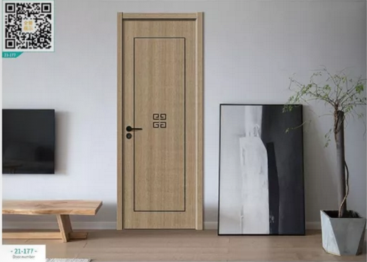 廠價新款鑫順來21-177掃碼輕奢鑲金屬條木門,掃二維碼看裝修風格